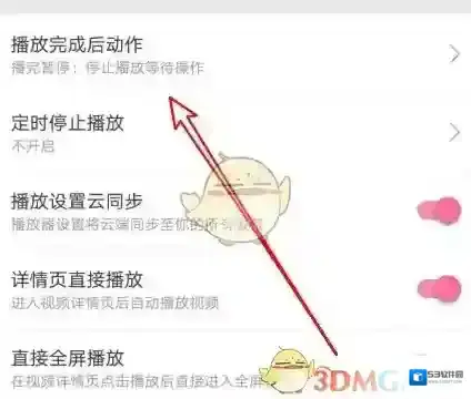 4、然后在打开的播放设置页面中,找到“播放完成后动作”设置项。