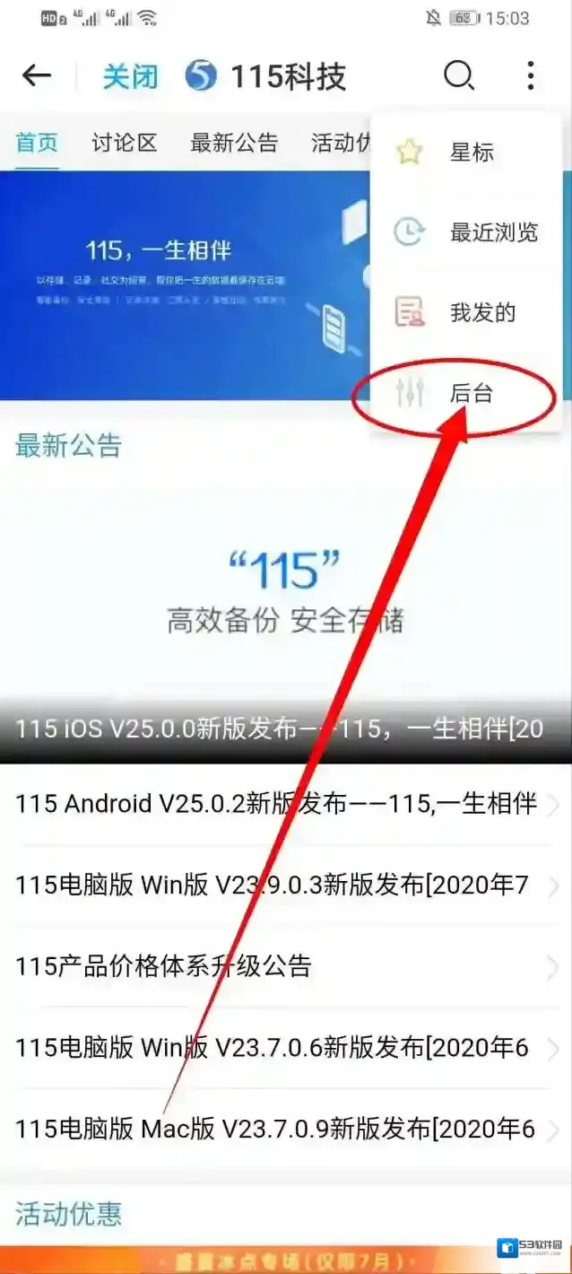 5、在社区的界面中,点击右上角的“省略号”,在弹出的选项中点击“后台”。