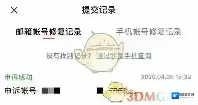 3、最后在账号百宝箱中点击提交记录进入查看我们的修复结果,所有提交的账号修复都可以在提交记录中查看。