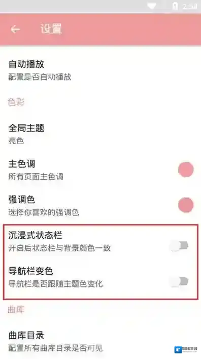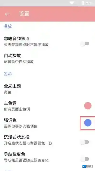 11、最后还可以开启色彩中的其他两项,让状态栏和导航栏的颜色也和主题色一致。