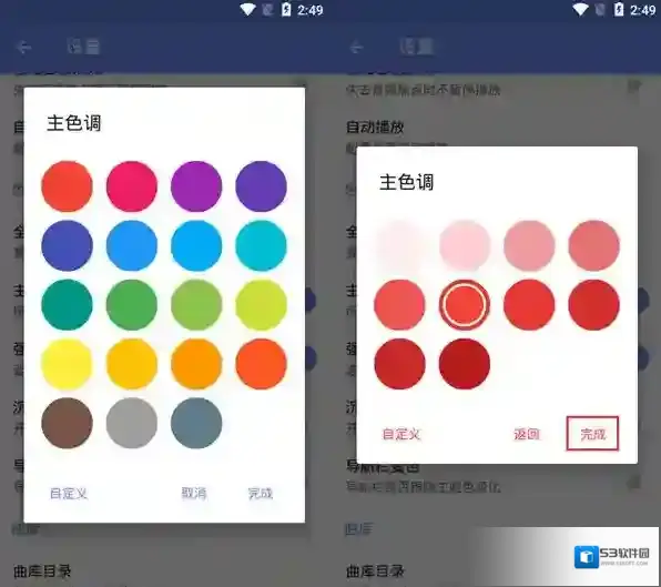 3、在设置中一直下滑好到“色彩”,在色彩中点击主题调右侧的颜色,右侧显示的颜色为APlayer当前使用的主题色;