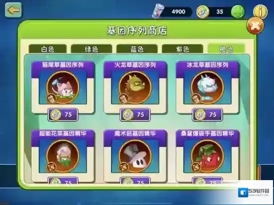 首个版本中,《植物大战僵尸2》共开放了80款植物的基因效果,涵盖白、绿、蓝、紫、橙五大品质。