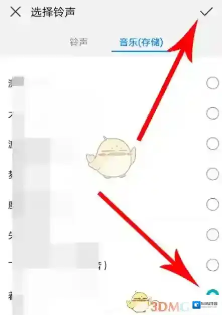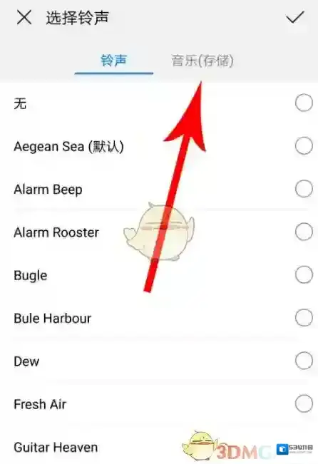 9、打开“选择铃声”界面后点击“音乐(存储)”