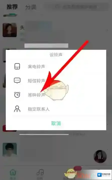 6、重新打开“设铃声”弹窗后点击“闹钟铃声”