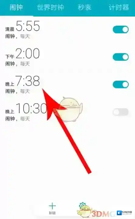 7、打开手机闹钟设置界面,点击想要设置铃声的闹钟
