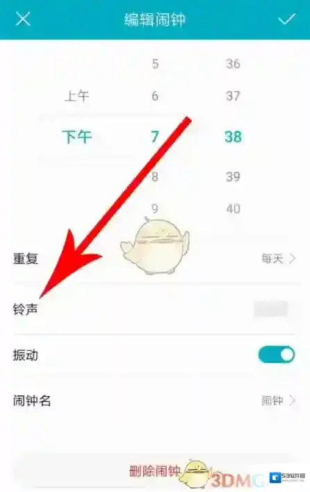 8、打开“编辑闹钟”界面后点击“铃声”,位置见下图