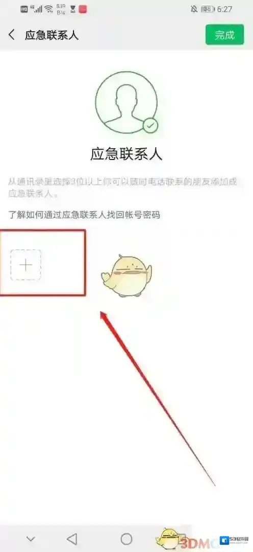 5、进入“应急联系人”界面后,点击“应急联系人”界面的“+”