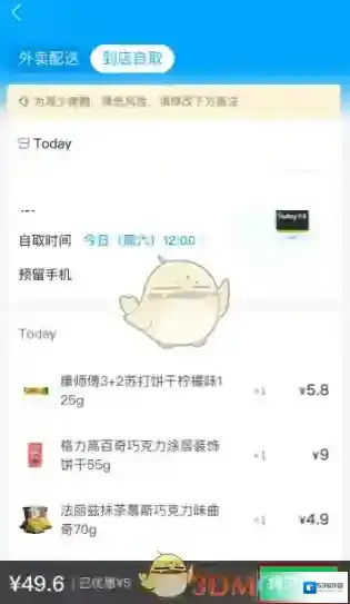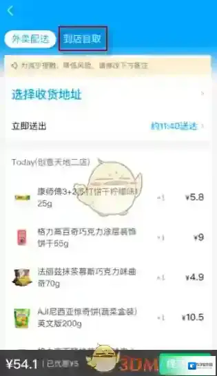 4、在结算界面点击“到店自取”(不支持则没有该选项);