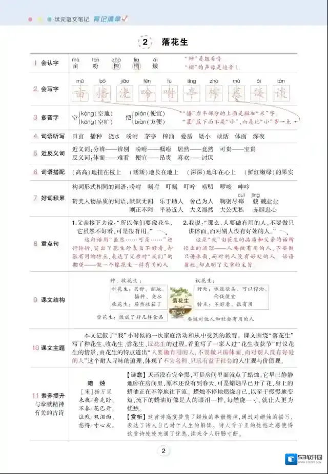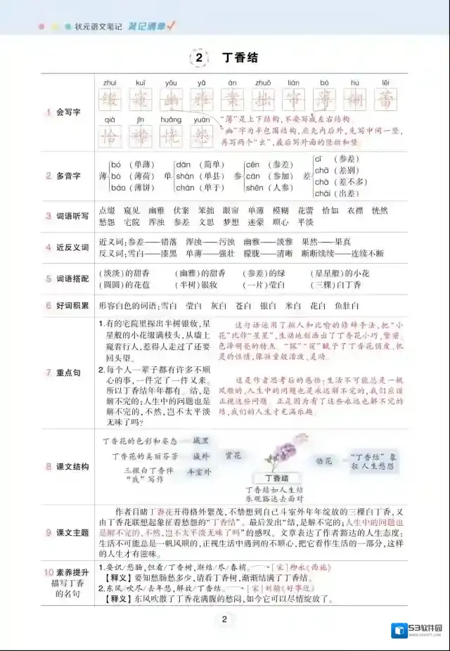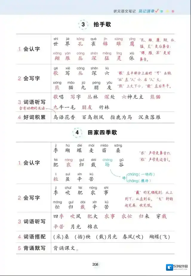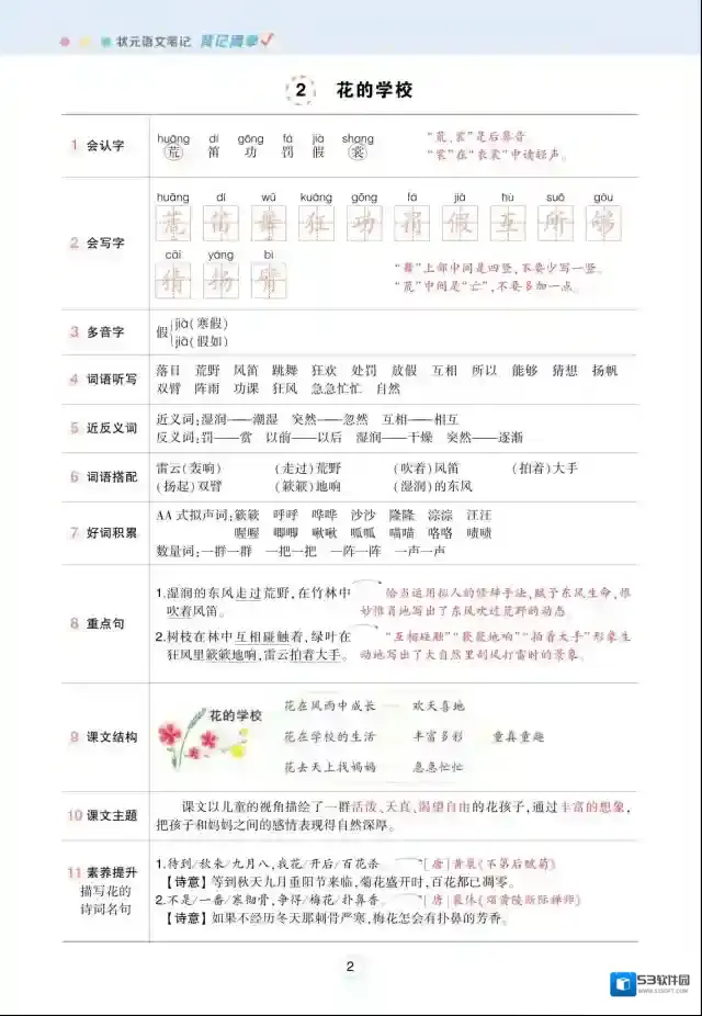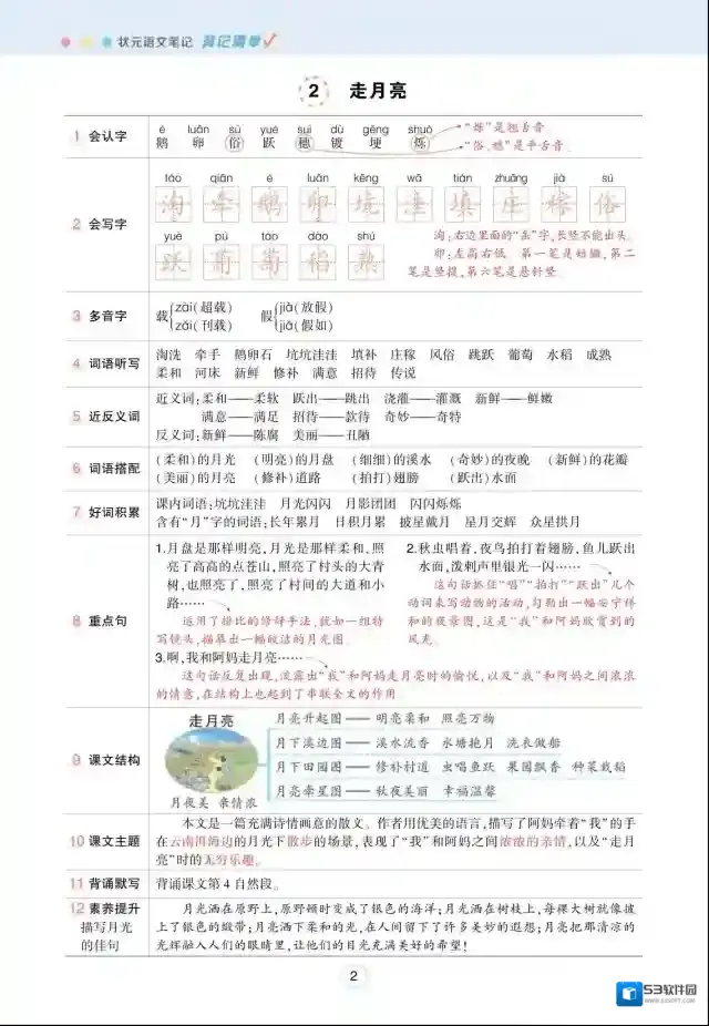 状元语文笔记(背记清单)2年级上册PDF百度云网盘