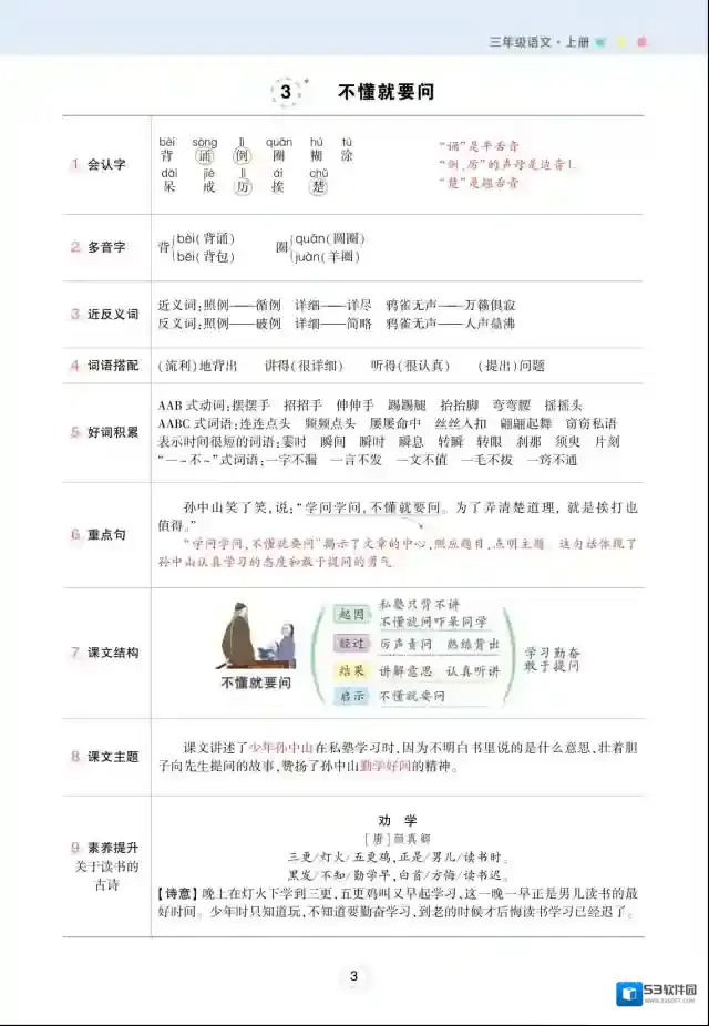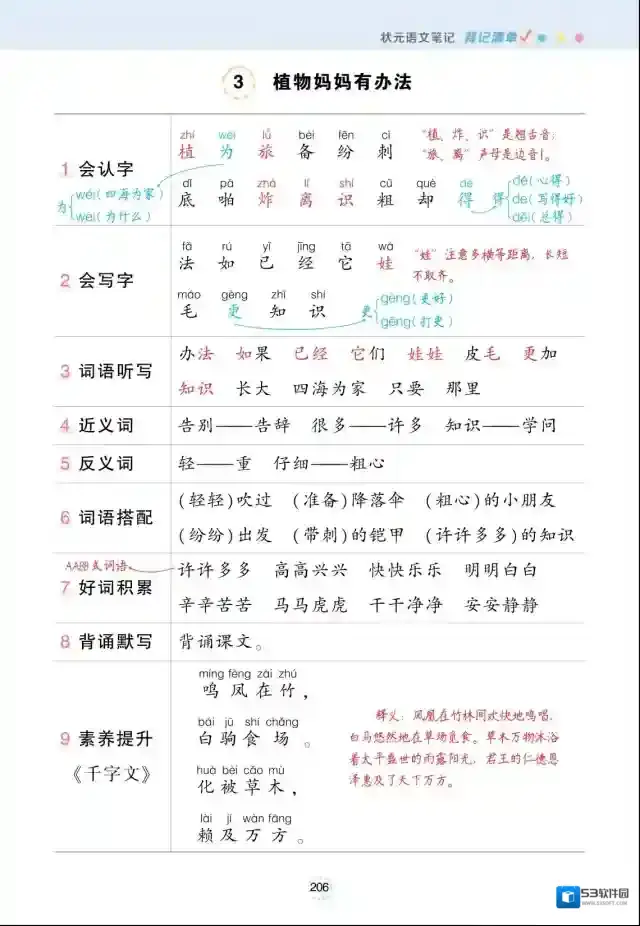 状元语文笔记(背记清单)3年级上册 pdf格式 百度云网盘