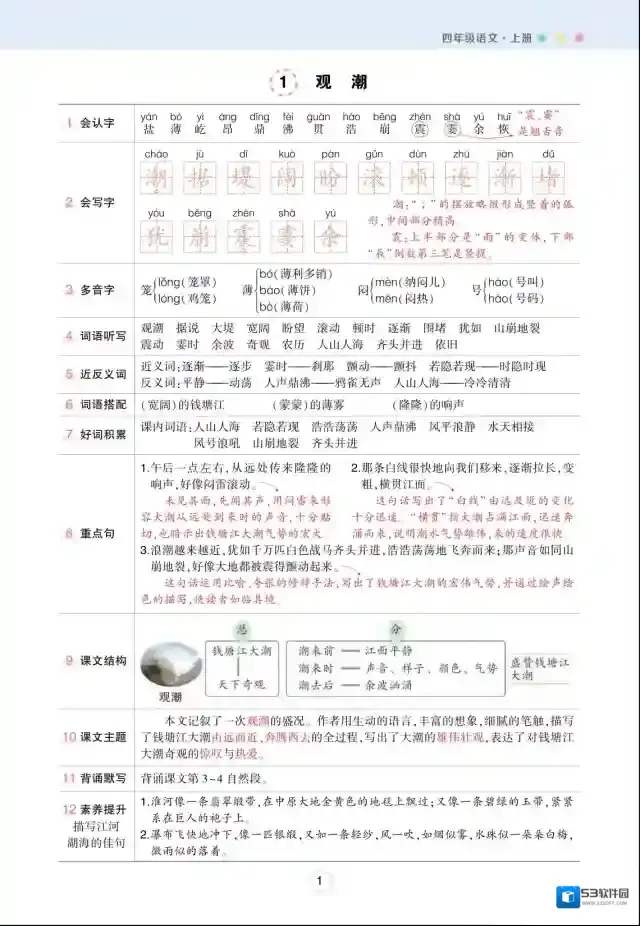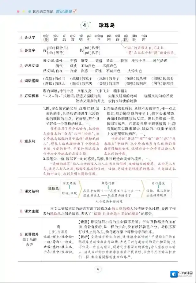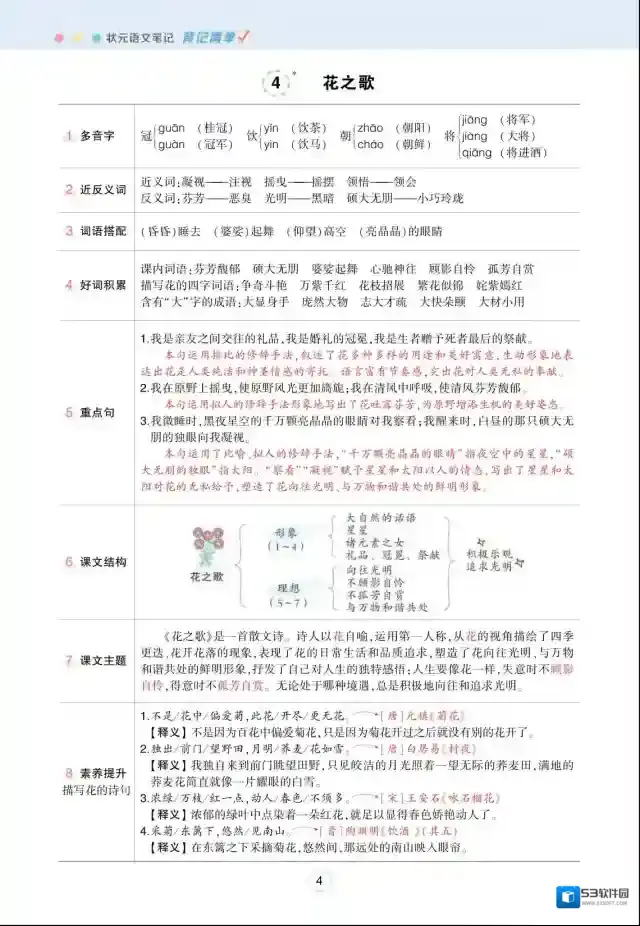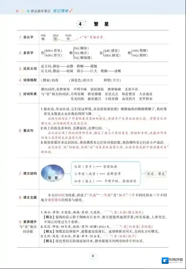 状元语文笔记(背记清单)小学4年级上册 pdf 百度云网盘