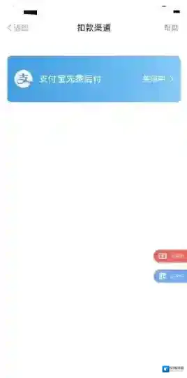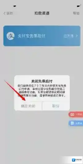 3、进入扣款渠道页面,点击”支付宝先乘后付”