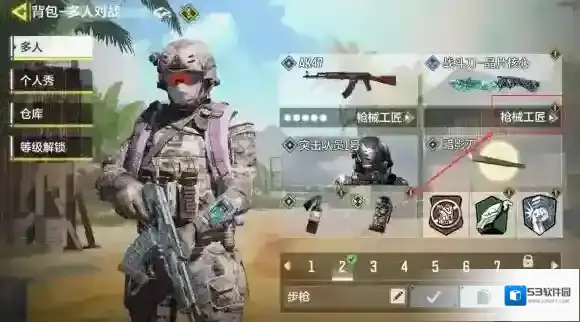 2.然后选择副武器,择枪械工匠。我们以战术刀为例。