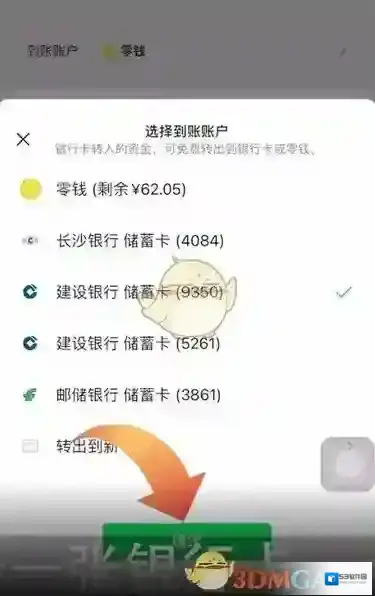 4、选择一张银行卡,点击确定,再输入金额,点击转出;