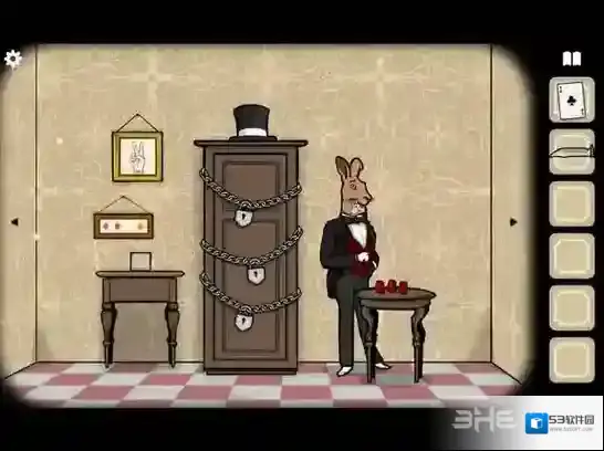 锈色旅馆攻略兔子第7关三星图文流程 逃离方块锈湖旅馆三星攻略 提示就在墙上的画和海报:卧室旁边的,剪刀手,猫头鹰先生(猫头鹰代表老K),演出海报(上面和下面的花纹)。摆完以后如下。 梅花五的牌动了一下,托开看到一把钥匙。2025-07-15