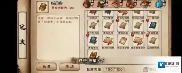 4.我们进入包裹,当我们的碎星步残页集齐十五张后,可以合成碎星步。