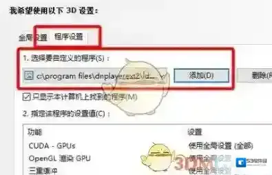 7、在“程序设置”下方添加雷电模拟器,然后使用最佳性能即可。