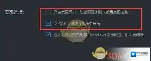 4、然后在下方取消勾选“开启垂直同步”,勾选开启“支持ASTC纹理”