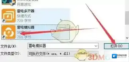 4、找到雷电模拟器的快捷方式,将它添加进去。
