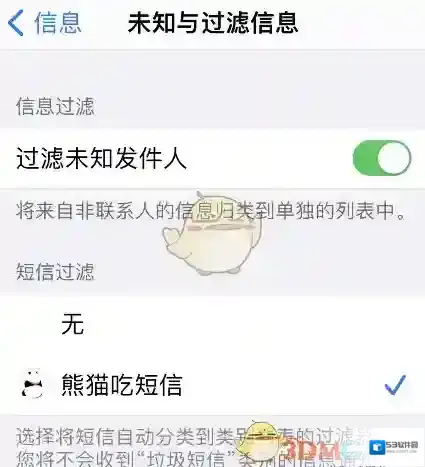 《熊猫吃短信》拦截短信方法 2025-07-17 16:24:57 编辑: 小雨 分类: 应用教程 • 阅读: 262 1、app安装成功后,进入系统设置 2、找到信息选项 4、在短信过滤中选择熊猫吃短信即可。 本文内容来源于互联网,如有侵权请联系删除。 发表回复 请登录后评论... 登录后才能评论 评论列表 ( 0条)