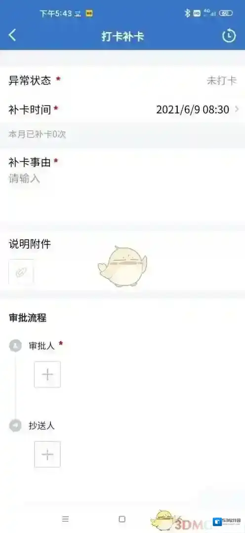 8、最后输入我们缺卡的原因进行审批就可以了。