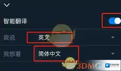 4、将智能翻译右侧功能开启,选择好翻译语言就可以了。