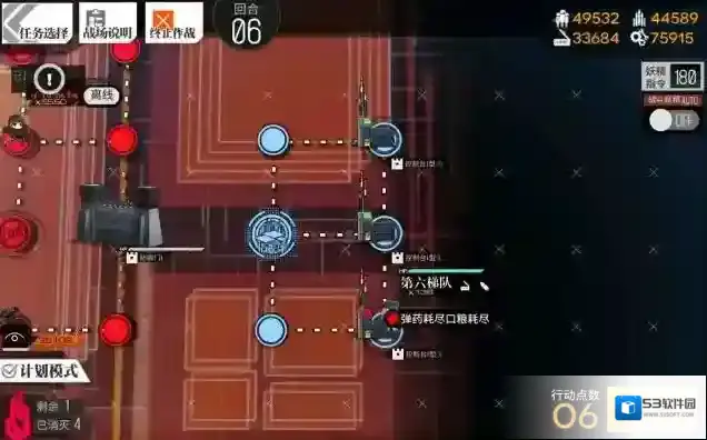 回合三,左上机场下主力一,向右来到第二扇防御门前,狗粮解锁控制台3后再向前两格