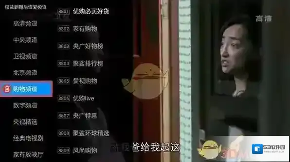4、找到不喜欢看的频道,比如购物频道,按住确定键,确认删除。