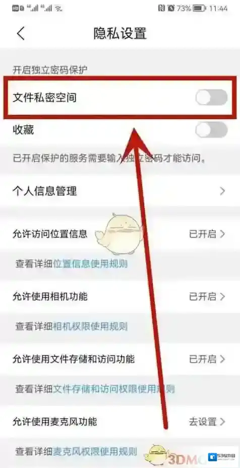 3、进入隐私通知,点击文件隐私空间或收藏。