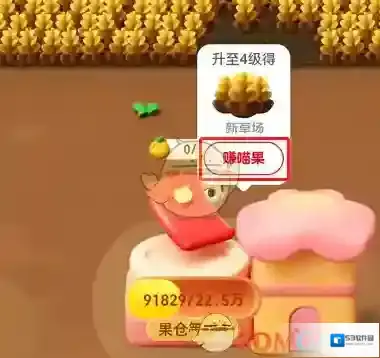 2、要想快速升级果仓,就需要快速获得喵果,喵果获取可以通过在草场吸喵果来升级。