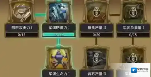 首先新手玩家我只建议你去点击左边的军事天赋,右下角的天赋都是大佬的卡不缺伤害点的。第一项军团攻击力我的建议是点满,接下来的前置天赋也需要点满,下一栏的军团防御力也需要我们去培养。还有生命值也同一个道理,只需要点1-2级即可,像右边的陷阱制造效率可以不点等等。
