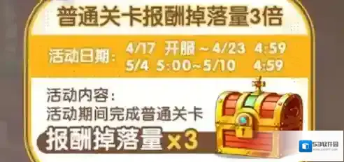 活动内容:活动期间完成普通关卡,报酬掉落量三倍。