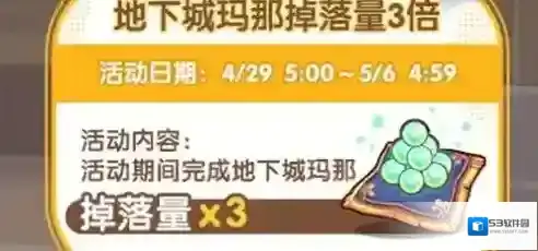 活动内容:活动期间完成地下城,玛那掉落量三倍。