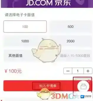 5、选择你需要的面值来进行输入,点击“加入卡清单”。