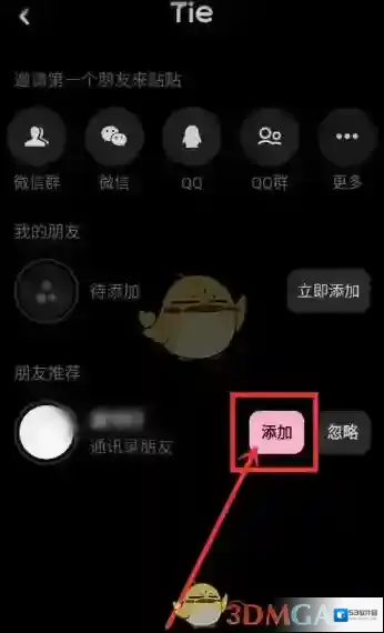 《贴贴》添加通讯录好友方法 2025-07-30 19:23:56 编辑: 小文 分类: 应用教程 • 阅读: 211 1、进入贴贴app后,点击左上角的“朋友”图标 2、点击发现通讯录朋友后面的“查看” 3、点击“允许”开启手机通讯录权限 4、最后就可以看到通讯录朋友并添加了。 本文内容来源于互联网,如有侵权请联系删除。 贴贴应用相关内容 全部 贴贴就可以 贴贴朋友 贴贴点击 贴贴通讯录 贴贴 《贴贴》删除好友方法 1、进入到贴贴页面之后点击左上角的人像图标; 2、然后在此页面点击你要删除的好友右边的三点图标; 3、最后在弹出来的选项中点击解绑朋友关系即可。 本文内容来源于互联网,如有侵权请联系删除。 2025-07-30 发表回复 请登录后评论... 登录后才能评论 评论列表 ( 0条)