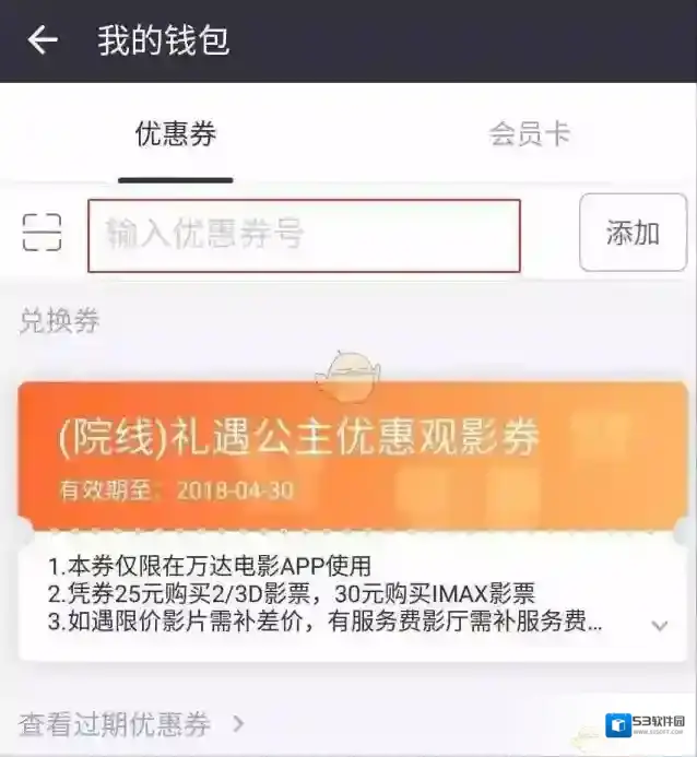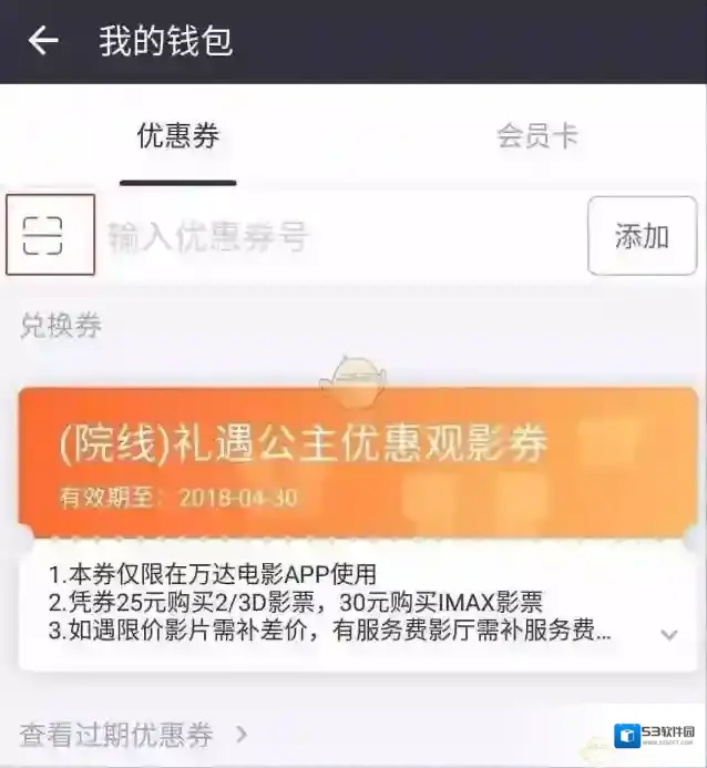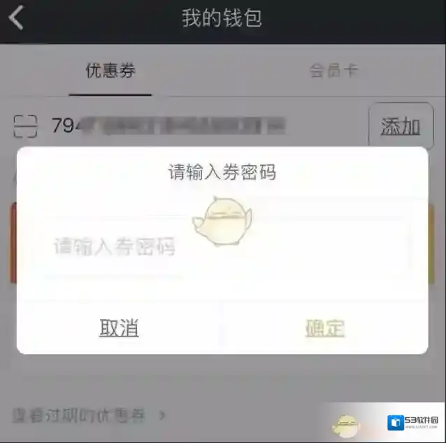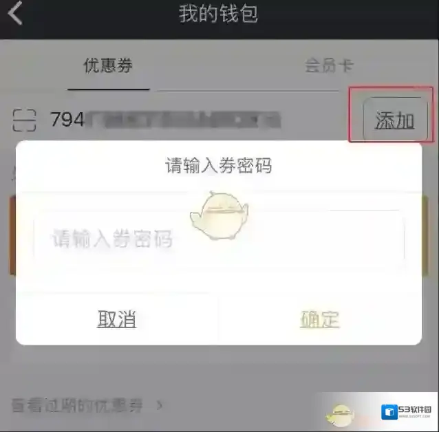 扫描之后,输入劵密码(需刮开),点击右侧“添加”即可