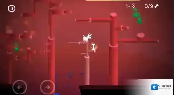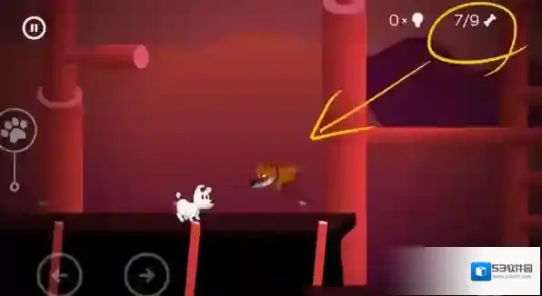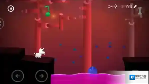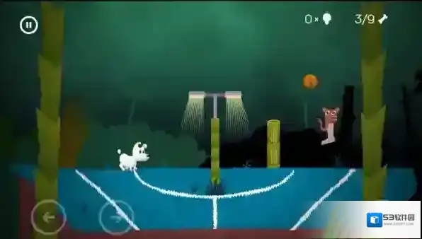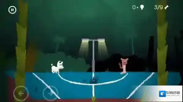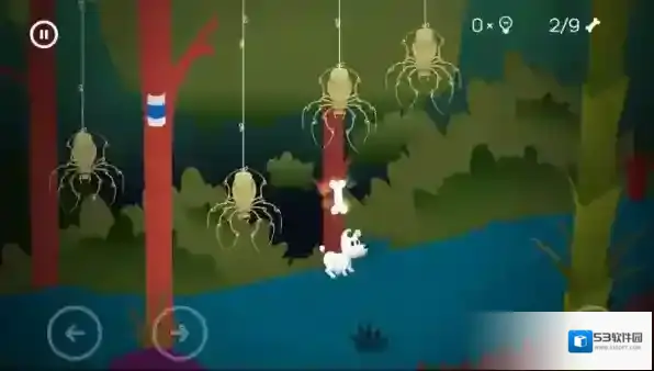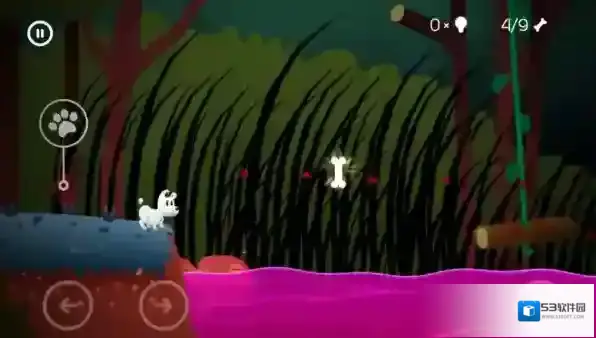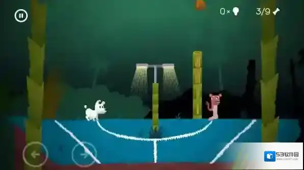 跳上岸,往前走,会看到恶狗挡在前面,拖动我们所收集的骨头到恶狗身上,会看到他飞走