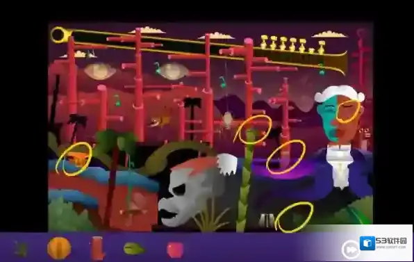 收集后,通过最上方的竹子里面向右走,到最右边看到被封锁,根据提示弹奏,成功后堵住的木塞会掉落,就可以出去了