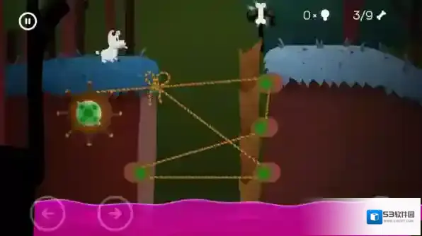 按图中所示连接,但是会被树挡住,先点击树木,点几下直到树枝都掉落,拿到骨头