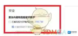 4、找到“欺诈内容和危险软件防护”功能栏,取消“拦截危险与诈骗内容”功能前面的勾选即可。