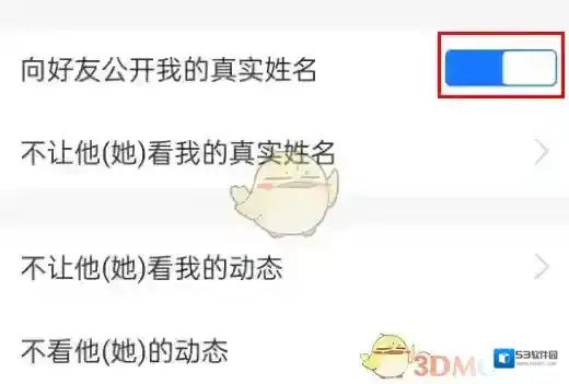 4、找到向好友公开我的真实姓名,关闭右侧开关即可。