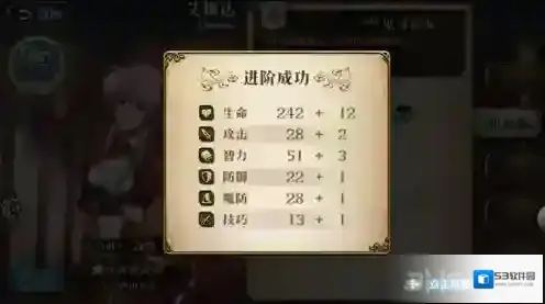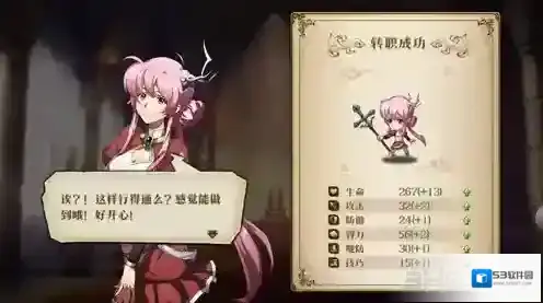 10.转职成功后会改变英雄的外观和立绘,小编艾梅达从蓝色服装变成红色服装,以及大量的属性加成。