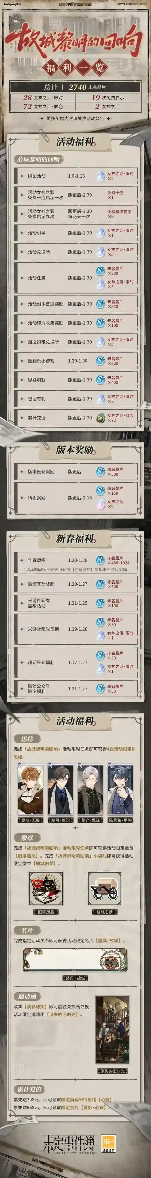 -总计未名晶片×2740、女神之泪·限时×28、免费启示次数×19等福利回馈