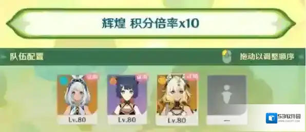 将积分倍率调至十倍,推荐阵容为希诺宁、玛拉妮、香菱,琳妮特/万叶,其中希诺宁、玛拉妮、香菱是试用角色。
