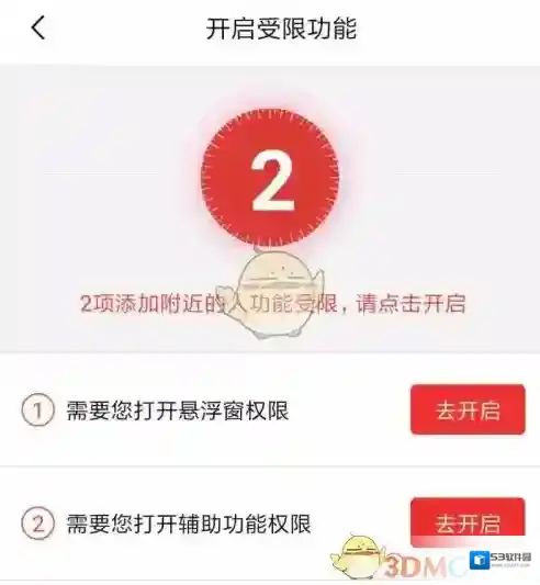 4、如果遇到开启受限功能提示,根据下图所示,依次点击去开启选项。