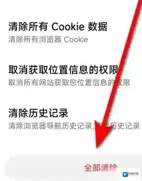 5、在打开的清除界面选择全部数据,点击底部的全部清除按钮即可关闭猜你想搜功能。