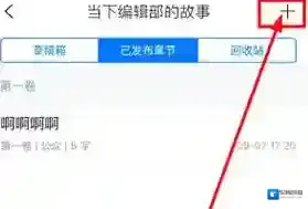 5、完成以上所有操作,我们进入到我们的文章便捷窗口,点击右上角的+即可新增章节了。