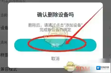 4、在提示框中点击“确定”按钮即可删除绑定的智能体脂秤设备。
