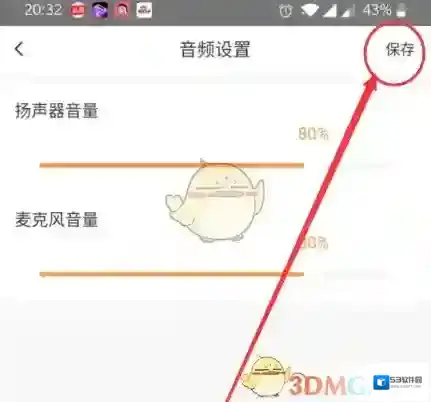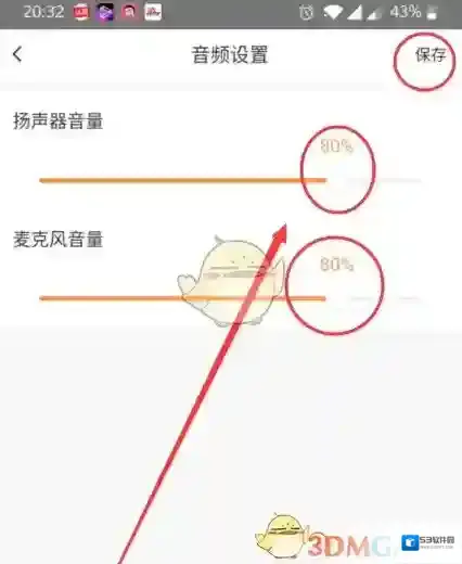 5、在音频设置页面,点击拖动即可调节扬声器音量和麦克风音量;
