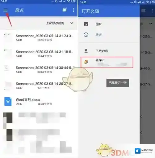 选择打开-浏览,点击左上角的三个横杠-坚果云,就会直接进入坚果云文件夹界面,选择需要的文件进行编辑就可以了。
